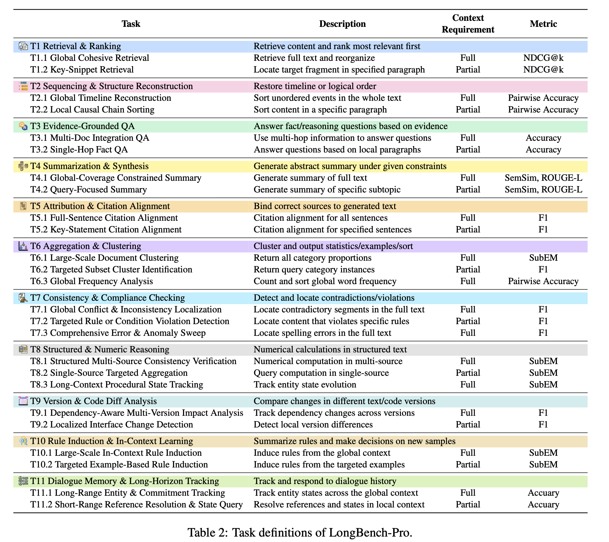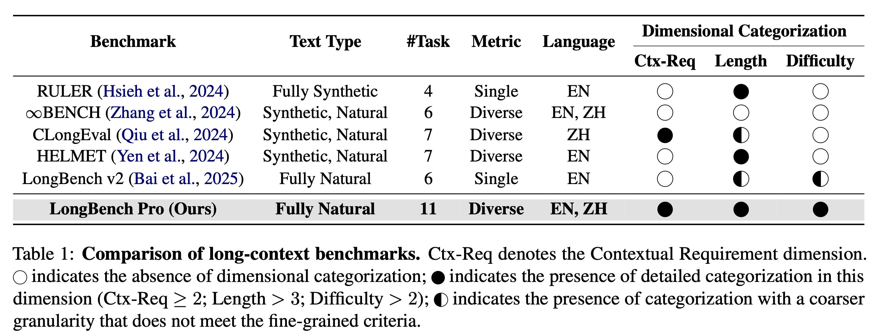 In addition, LongBench Pro introduces a multi-dimensional taxonomy to support a comprehensive evaluation of models under different operating conditions:
