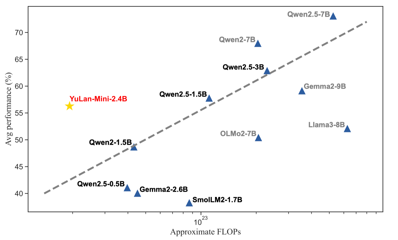 model = AutoModelForCausalLM.from_pretrained("yulan-team/YuLan-Mini", torch_dtype=torch.bfloat16)