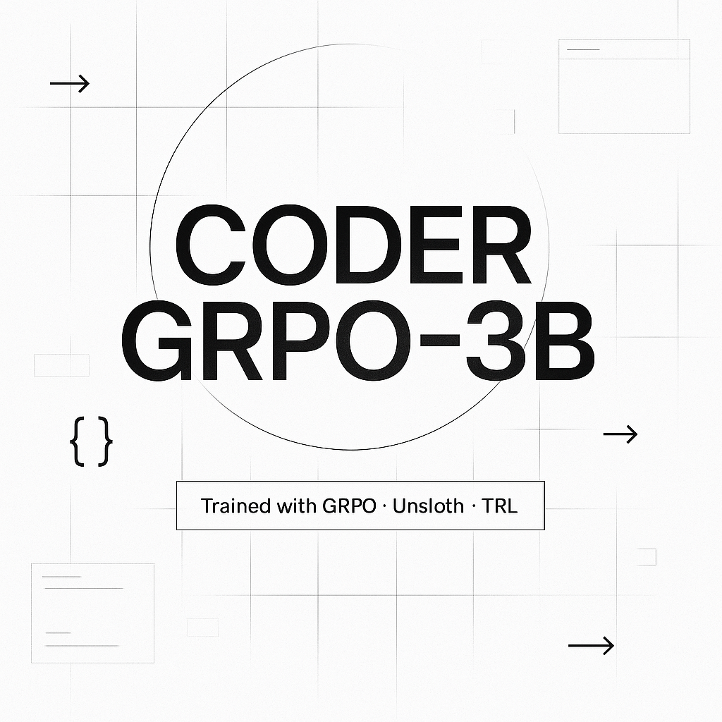 This model was fine-tuned with GRPO (Group Relative Policy Optimization) using Unsloth + TRL, targeting high-signal code tasks (write, refactor, explain, fix). Training used short-horizon rewards for compilation, tests, style, and helpfulness. Unsloth enabled faster, memory-efficient training on consumer GPUs.